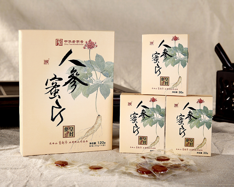 人參蜜片,精選優(yōu)質(zhì)鮮人參,配以長(zhǎng)白山椴樹(shù)蜜經(jīng)科學(xué)工藝精制而成。獨(dú)立包裝、方便即食。